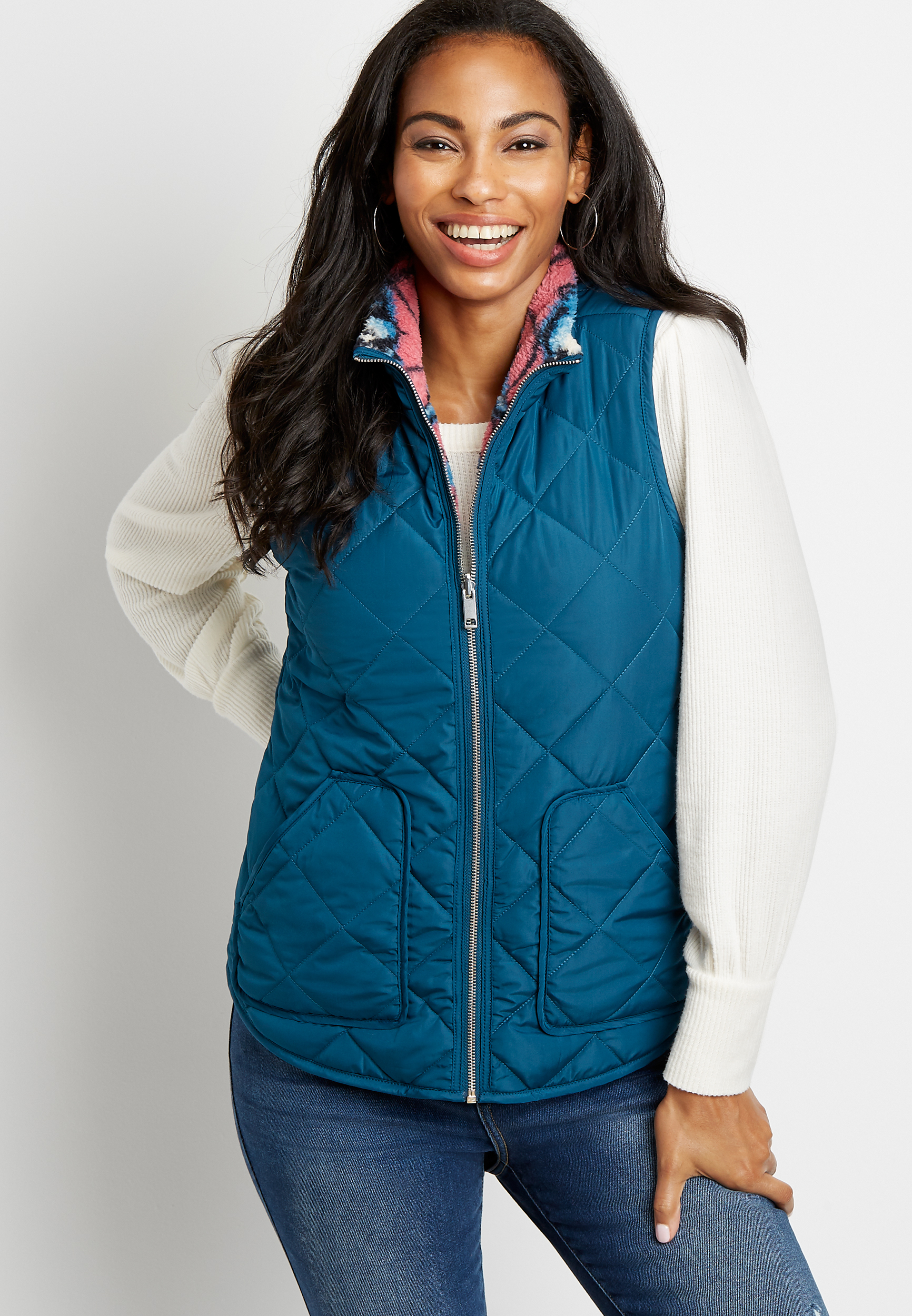 Blue Printed Reversible Sherpa Zip Up Vest maurices